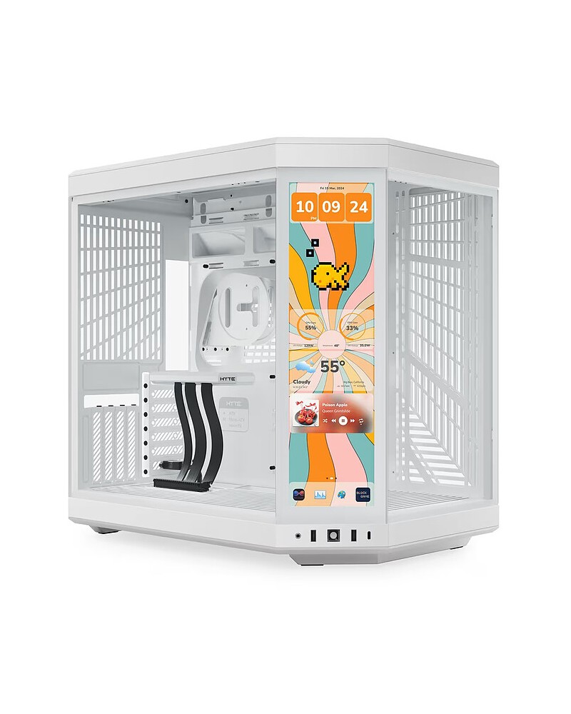 Le boitier moyen tour Y70 Touch Infinite se distingue par sa vue panoramique sur l'ensemble de vos composants grâce à ses parois en verre trempé et son écran LCD tactile 14.5" entièrement paramétrable. Côté composants, il permet d'installer une carte graphique 4 slots en position verticale avec le riser PCIe 4.0 x16 fourni tout en conservant les emplacements PCI horizontaux en format low profile. Au niveau du refroidissement, de nombreuses options sont possibles avec la possibilité d'installer jusqu'à 10 ventilateurs de 120 mm sans oublier le watercooling avec la capacité d'accueillir jusqu'à 2 radiateurs de 360 mm.