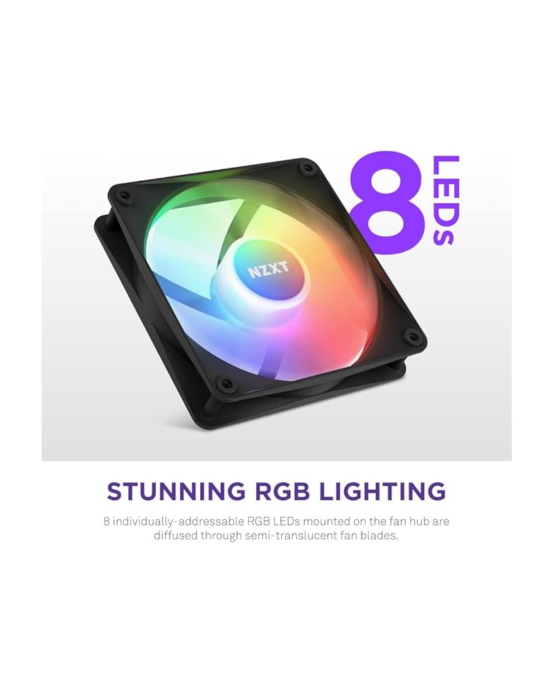 NZXT F120 RGB Core - RF-C12SF-B1 - Ventilateur RGB de 120 mm monté sur moyeu - Pression statique et circulation d'air élevées - Palier hydrodynamique - Commande MLI - Noir